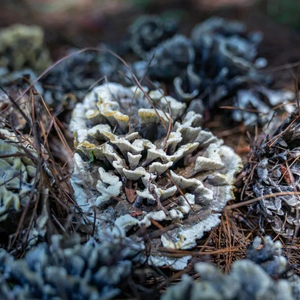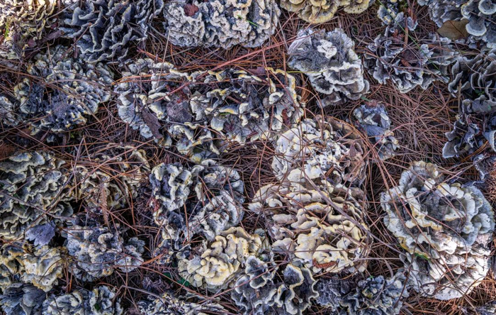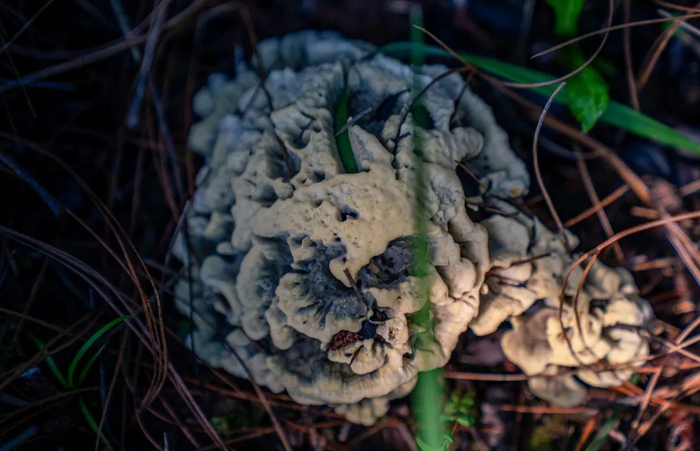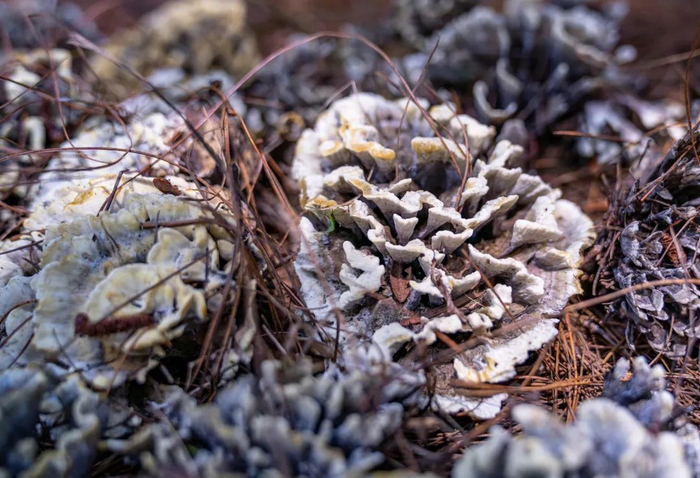 在一处用松毛搭起的“小帐篷”前,顾晓坤停下脚步,小心扒开这个小小的隆起,一朵美丽的干巴菌就展现在我们眼前。他说:“干巴菌大概有一枚硬币大小的时候,就要进行人工干预了。将覆盖在干巴菌上的松针、木屑等杂物用镊子小心清理干净,再用小瓶子制成一种微滴管设施为干巴菌增湿。大概15天,干巴菌就能长得有半个脸盘大,那时就能采收了。”
