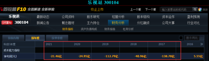 同花顺数据显示,2017年到2021年的5年间,乐视网共亏损339亿元。