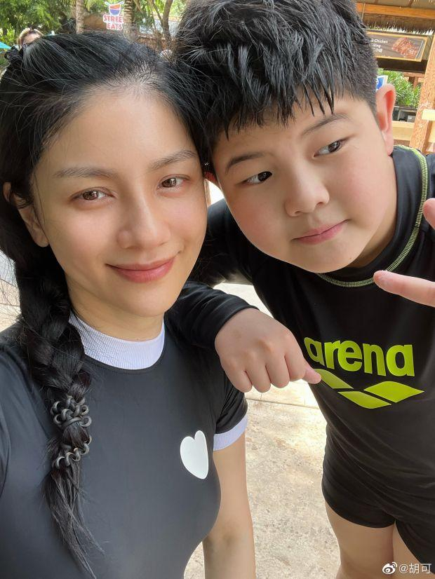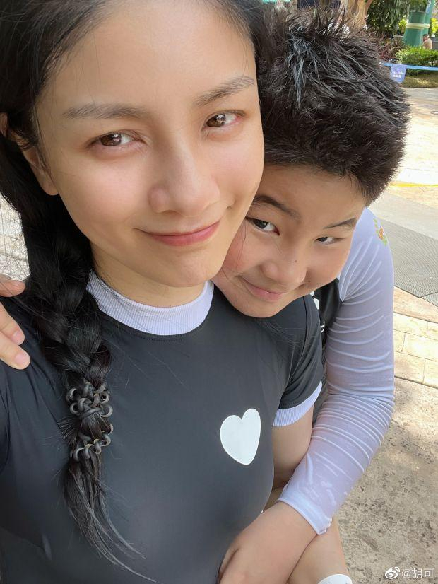 7月12日,胡可在自己的社交平台晒出与安吉、小鱼儿的自拍照,还配文吐槽:“孩子大了,想拍张照可不容易了,嘿,那位安吉同学能认真点吗?”