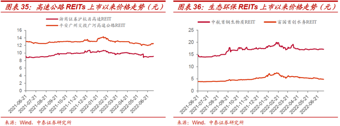 特许经营权项目中,生态环保类项目的安全垫较高速公路类更强,由于生态环保项目底层资产存在政府承诺或特许经营权协议中有保底措施,其未来收益更具有稳定性;而在疫情影响之下,高速公路车流量受到一定冲击,项目未来盈利能力也会受到一定冲击,由此在升水率方面,生态环保REITs明显高于高速公路REITs。但目前生态环保REITs的流通盘较小,涨幅均较高,而特许经营权类项目的“债性”突出,具有收益相对稳定、高分红的特点,并不具备高溢价和投机的空间,需关注炒作风险。高速公路REITs目前涨幅不大,部分可供分配收入完成率较高、盈利能力较强、分红率较高项目或存在价值低估,可以重点挖掘。