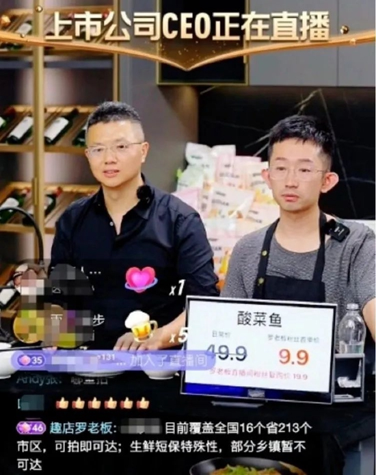 6月15号当晚,罗敏正式开启了自己的带货首秀,直播间直接挂起“上市公司CEO正在直播”,这可能是他仅剩的光环,直播中他多少有些局促和紧张,经历过大风大浪的他依然需要助播的配合才能撑住场面。