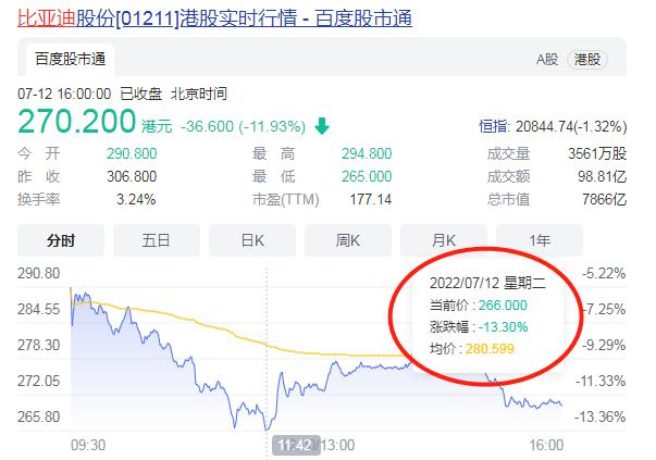 就在今天上午,港股比亚迪突然大幅杀跌,盘中股价一度跌超13%。港股的暴跌,连带着A股比亚迪也大跌,上午暴跌了7.3%。
