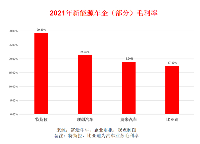 这个毛利率水平,和其他头部新能源车企相比,差距显而易见。