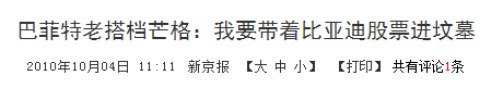比亚迪是目前巴菲特唯一持股并多次在公开场合力挺的中国公司,近十四年来,巴菲特从未有过减持。巴菲特投资比亚迪的想法来自他的好兄弟查理芒格,而芒格曾放过“狠话”――