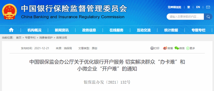 去年12月21日,银保监会曾专门针对“办卡难”“开户难”问题下发通知,要让数据“多跑路”、群众“少跑腿”。