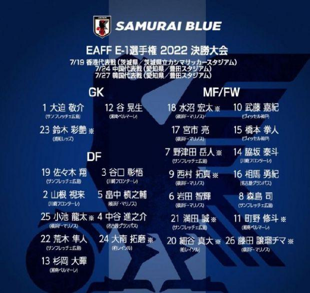 日本男足东亚杯大名单公布 无海归入选 26人全部来自J联赛