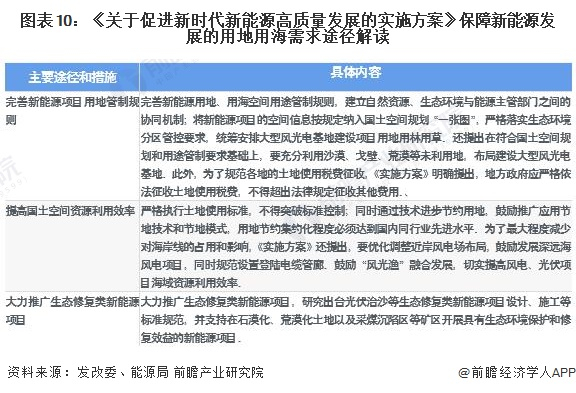 与传统能源相比,新能源能量密度较低,占地面积大。随着新能源规模快速扩大,土地资源已经成为影响新能源发展的重要因素。《实施方案》进一步强化新能源发展用地用海保障,通过明确用地管理政策、规范税费征收、提高空间资源利用率、推广生态修复类新能源项目等措施,推动解决制约新能源行业发展的用地困境: