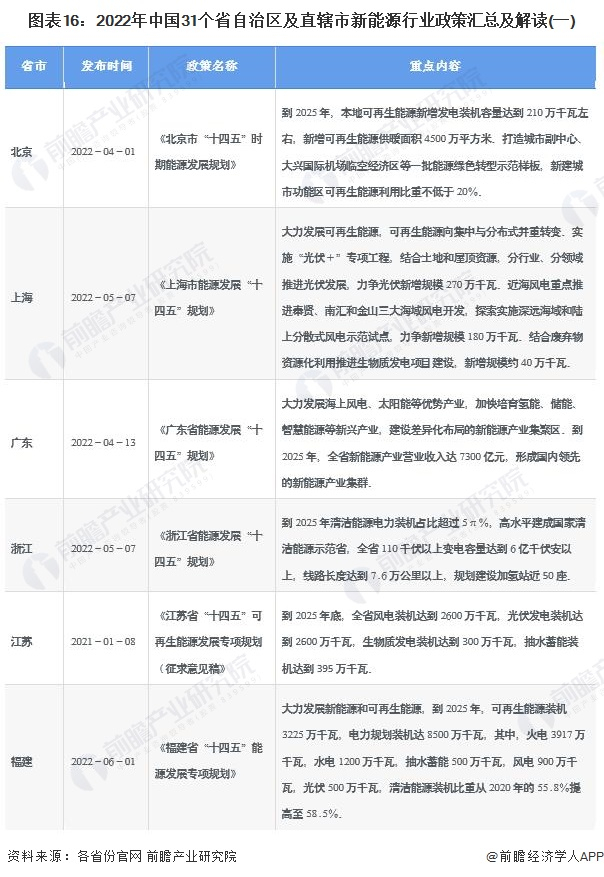 重磅!2022年中国及31省市新能源行业政策汇总及解读(全)