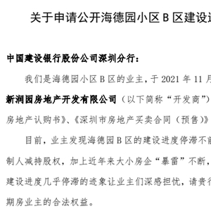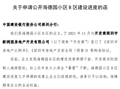 近日,一份《关于申请公开海德园B区建设进度的函》在网络流传。