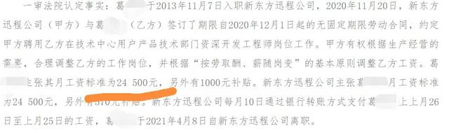 据该案件的二审民事判决书显示,葛某2013年11月7日入职新东方迅程公司。2020年11月20日,新东方迅程公司与葛某签订无固定期限劳动合同,约定岗位为用户产品技术部门资深开发工程师,月薪为2.45万元。