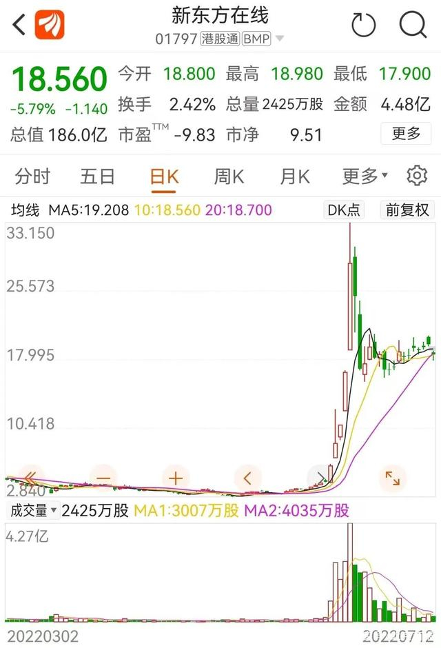 但也有观点认为新东方在线当前估值过高。报道称,招商证券6月17日对新东方在线下调评级至中性,原因是认为新东方在线当前估值需要对应直播带货业务近3000万元的日均GMV及35倍市盈率,这一外推假设过于激进,因此将评级下调至中性。