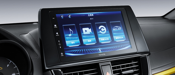 新车内饰采用对称美学设计,视觉效果简洁大气。中控台配备了9英寸多媒体显示屏,支持音乐、视频、百度CarLife、趣驾驶WeLink等功能。空调控制区域采用实体按键,反馈更直接,操作更方便。