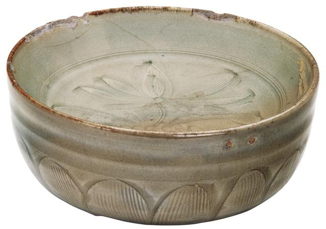 南宋 龙泉窑青瓷莲花纹夹层碗