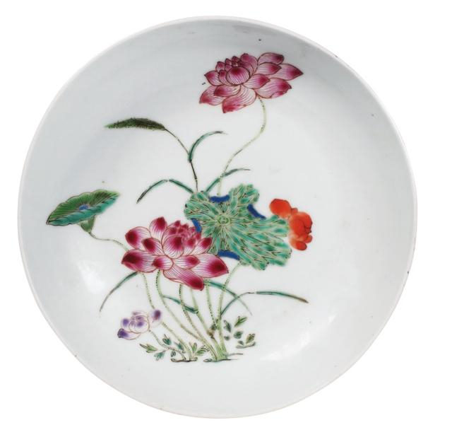 清雍正 景德镇窑粉彩荷花水草纹盘