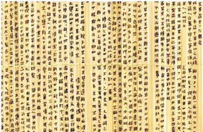 秦代竹简是中国最古老的书籍,即在竹片上墨书文字,用细绳分上、中、下三道按顺序编组而组成册。1975年底,在湖北省的云梦县睡虎地秦墓出土了1100余枚秦代竹简,全称《云梦睡虎地秦简》简称《云梦秦简》,现收藏于湖北省博物馆。