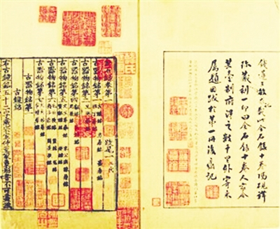 据考证,《金石录》最晚在南宋孝宗淳熙(1174—1189)年间,就已经有了刻印本流传(史称“龙舒郡斋刻本”)。历经近千年历史风云变迁,现存宋刻本《金石录》凤毛麟角。上海图书馆珍藏有一部宋刻十卷残本,此书原为清初杭州人冯文昌所藏,上有篆刻大师赵之的“金石录十卷人家”朱文长方印钤。后又经鲍廷博、阮元、潘祖荫等大藏书家相继收藏。此外,这本书上还留有江藩、顾广圻、翁方纲等大学者的题诗和跋文。虽为残本,却有着非同寻常的文献和文物价值,影响深远,弥足珍贵。