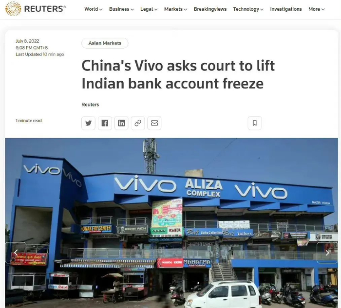 巧合的是,印度德里高等法院也在13日允许解冻vivo银行账户,前提是vivo要向银行提供95亿印度卢比(约1.2亿美元)担保。
