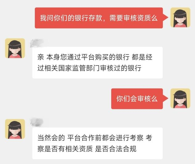 而对于银行资质的审核,360你财富客服则表示:“通过平台购买的银行,都是经过相关国家监管部门审核过的银行,平台合作前都会进行考察,考察是否有相关资质,是否合法合规。”