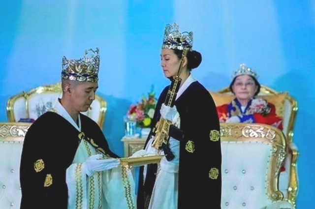 文鲜明当时的继承人文亨镇在平壤获颁国家统一奖(图片来源:作者提供)