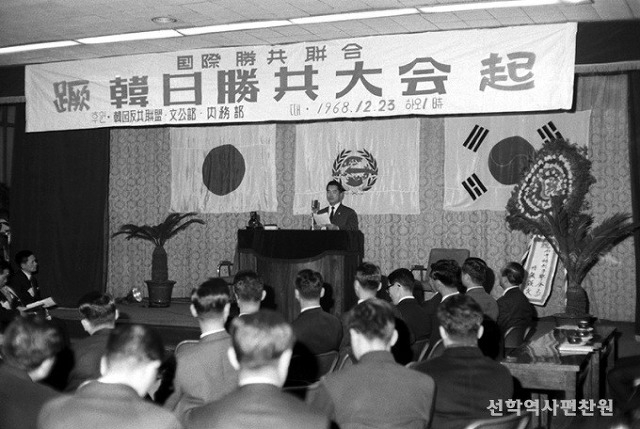 1960年代,美国出于对中苏的忌惮,调整了对亚洲的战略安排,要求日本、韩国、南越、台湾蒋当局等“第一岛链”节点积极准备军事“自保”,同时要扶植反共组织,提升“软实力”。韩国外有朝鲜这一贴身威胁,内部的朴正熙军政府政变上台后急需美国的政治背书和日本的经济支持,在反共一途上尤为卖力,文鲜明也就成了朴正熙全力支持的对象。
