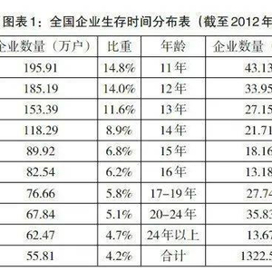 根据国家工商总局的统计数据,生存时间不足五年的企业占比相当之高,达到56%;生存时间超过十年的企业,仅占17.8%。