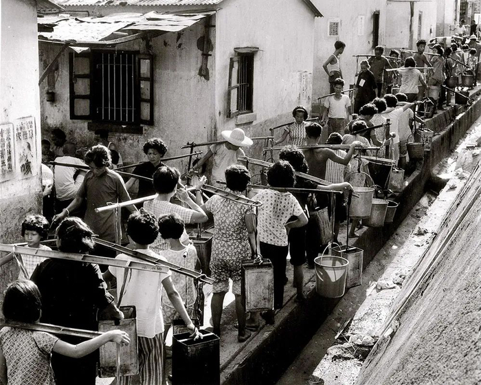 1963年香港大旱,每四天供水一次,挑水成为香港妇女们日常生活的重责