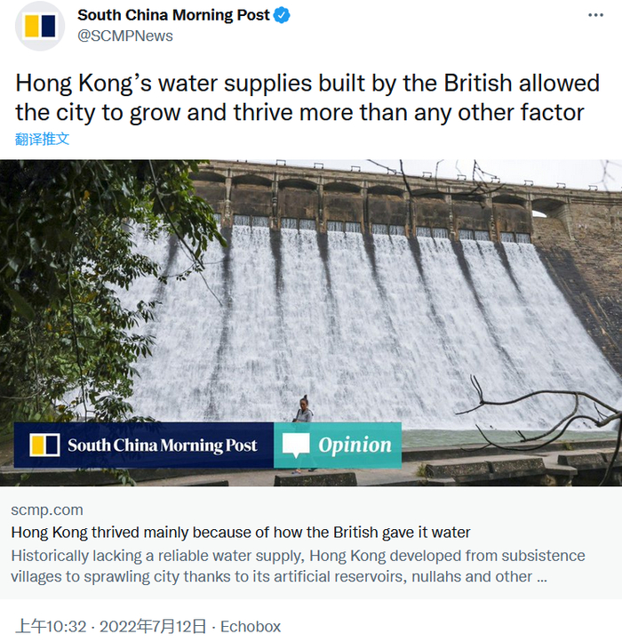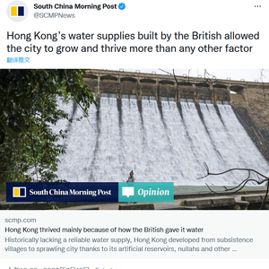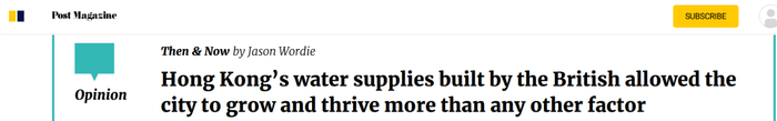 可尽管如此,这篇文章得出的结论却是,“英国在殖民时期建造的供水系统是香港发展和繁荣的最重要因素”。