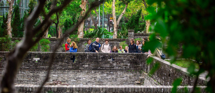 左四背包男子为Jason Wordie,图为其带队探寻香港历史遗址 图自其活动主页