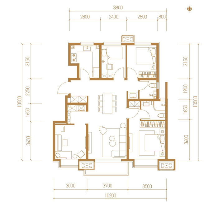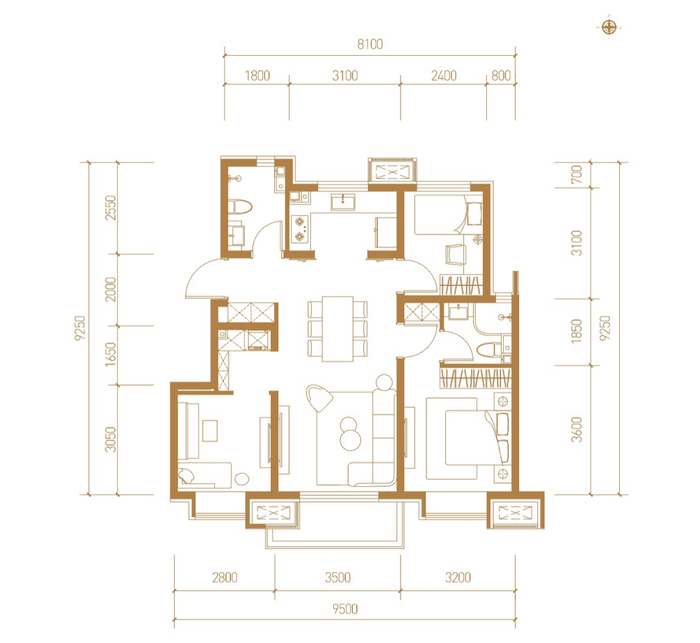 92㎡三室两厅两卫,南北通透,方正全明;9.5米南向三面宽,享受阳光宠爱,俯瞰园林风情;LDK 客餐厨一体化设计;套房主卧,配备独立卫浴间,南向飘窗,独立家政空间,提高家务效率。