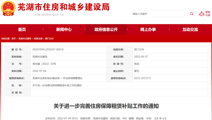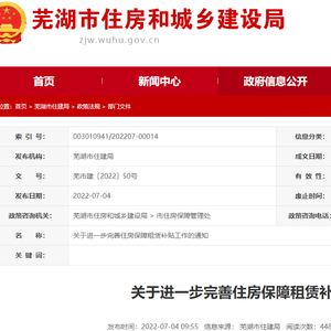芜湖市进一步完善住房保障租赁补贴工作