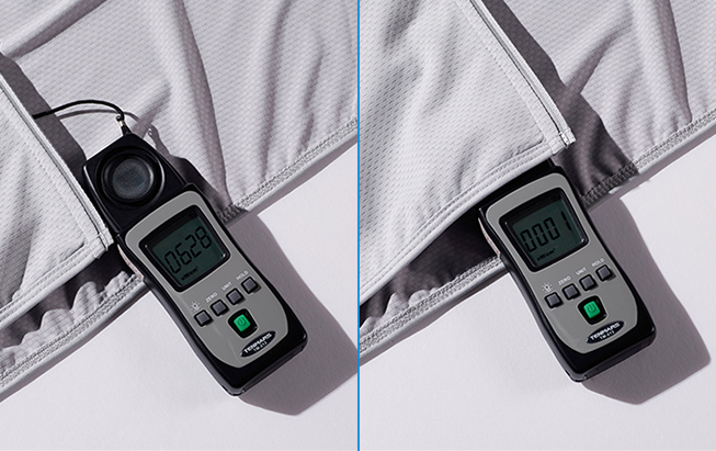 阳光直射下,零防护时的紫外线强度高达628;而用防晒衣遮盖后,直接降到了1,可谓是阻挡了95%的紫外线。