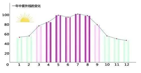 太阳光中的中波紫外线UVB会导致晒伤,而长波紫外线UVA又会深入真皮以下组织,破坏胶原蛋白、弹性纤维组织,造成肌肤衰老。