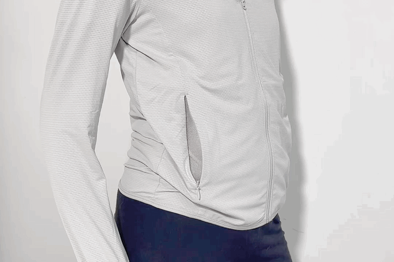 这款防晒衣采用的是高科技冰感面料,外加科技防晒纱线经特殊编织工艺,形成10万+不规则的密集散热孔,能快速带走体表热量,让衣服内外空气能自由流动。