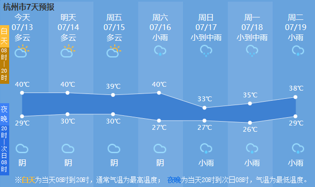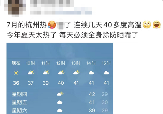 杭州仍可达40℃左右。