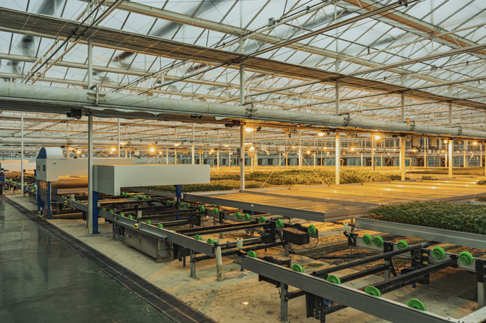 农场总规划面积120亩,其中智能温室30000平米,用于瓜菜类蔬菜种苗培育及新品种新技术研发、示范,配有巡检机器人、种子处理加工、智能播种、智能运输、智能嫁接等设备。农场以自动化育苗解决种苗供应短板,相对于传统育苗工作靠劳力、决策靠经验的模式,提高运行效率3倍以上、降低劳动力投入80%以上、节省资源30%以上,有效解决传统育苗占地时间长,出苗率低,用工量大的问题。