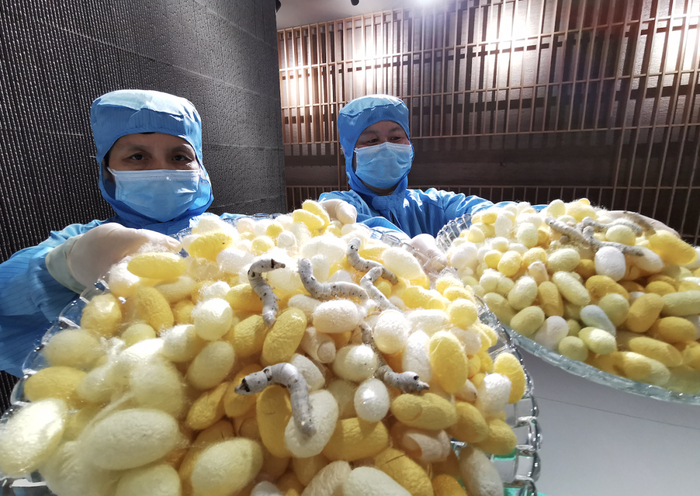 农场通过建设数字化、智能化可控性农业设施,实现蚕茧生产所需的蚕品种、人工饲料营养配方、疫病防控、环境控制、智能自动化生产等全程可控,蚕茧生产效率是传统养蚕的500倍。2022年1-6月份,已生产鲜茧 3045 吨,实现销售16173万元,产量与去年同期相比增长236.41%,销售额增长236.27%。