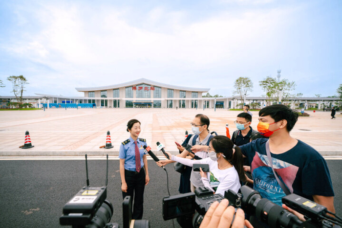博罗北站站长陈晓冰在向媒体介绍博罗北站情况。