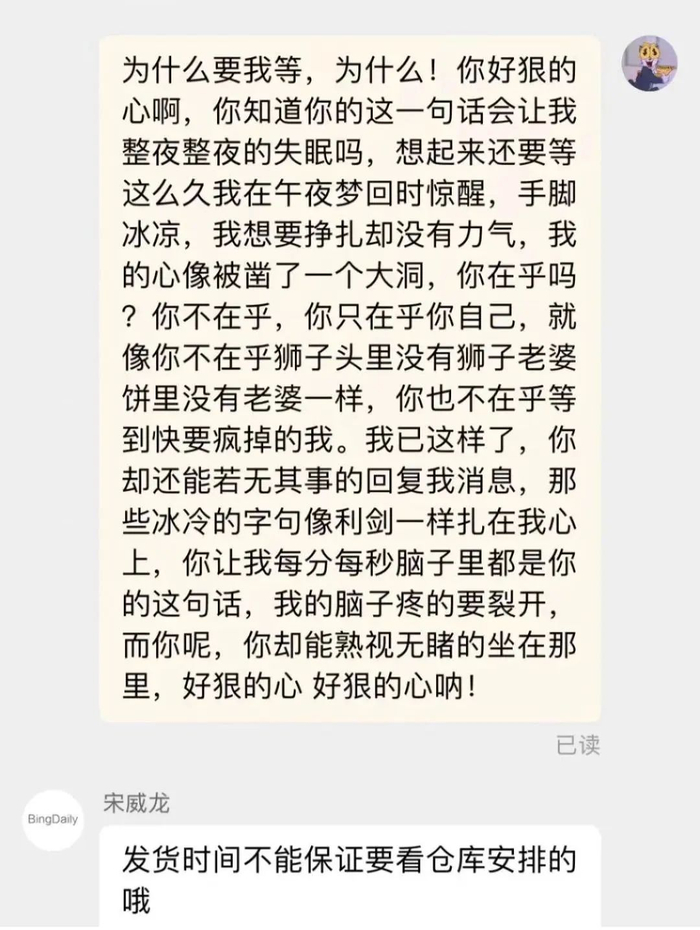 乍看还以为《还珠格格》续集里紫薇的台词,实际上,这是被预售不发货逼疯网友的内心独白。