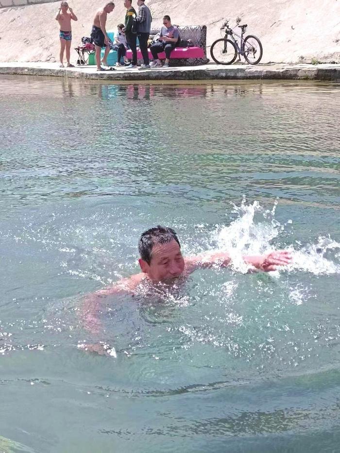 老刘退休后搬到彭城的邯郸市第一帆布厂家属楼居住,就在黑龙洞附近。一天他到黑龙洞转悠时,看到这里无数大小泉眼汩汩涌出泉水,碧水荡漾、清澈见底,吸引着众多游人观赏、划船、游泳……在这里,刘恩厚遇到了原通二矿材料科工作的好友,他也在这里游泳,并说,这泉水冬季水温都在15度以上,而且水质特别好,在全国都是罕见的。从此,老刘就每天来这里游泳,后来有10年时间,