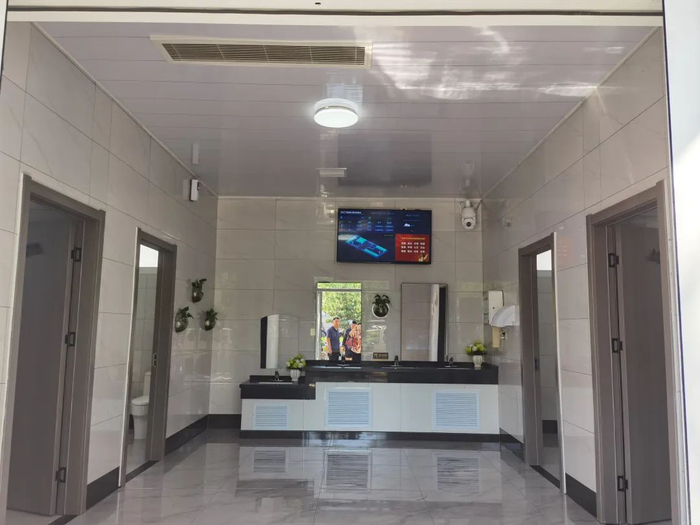 走进位于高新区龙华西道南侧智慧公厕,一抬头就能看到墙上的显示器,这是智慧公厕的“大脑”,大屏可以显示公厕的温度、湿度、PM2.5、PM10、人流量、厕位实时占用等情况,让如厕者一眼就能了解整个厕所的环境情况,也能让保洁员更及时地找出问题并解决。厕所内还设置了人脸识别取纸机,通过扫脸免费获取厕纸。每个蹲位设置了紧急报警按钮,如突发紧急情况可以按下按钮,公厕保洁人员会第一时间赶往现场。整个智慧厕所采用了最新物联网、互联网技术搭建的管理体系。