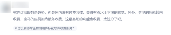 但奔驰的后轮转向、宝马特斯拉的座椅加热,都是车本身就有的,我花上百万买豪华车,这些硬件的东西难道不应该选上就能用吗?