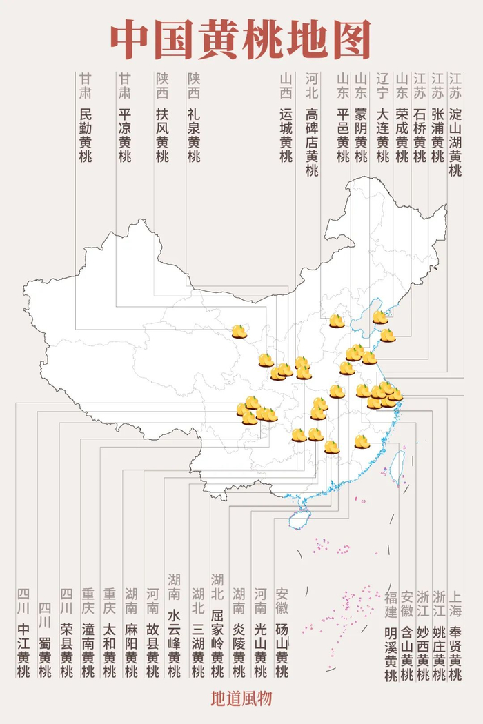 黄桃广泛分布于中国南北各地。