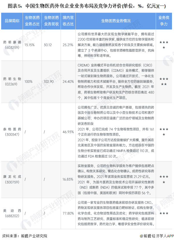 4、中国生物医药外包行业企业布局及竞争力评价