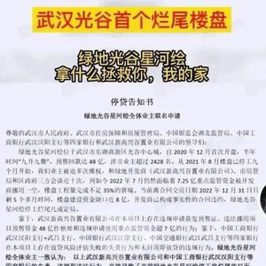 7月7日,“武汉汉南时代新城全体业主强制停贷告知书”,宣称项目逾期交房数月,业主多次现场维权仍无实质进展,数千户业主(已售房源且未结清贷款)决定,若该项目在限定时间(2022年8月1日)内仍未全面复工,业主将强制停还银行月供。”