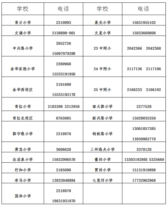 信都区主城区2022年小学招生信息采集学校咨询电话表