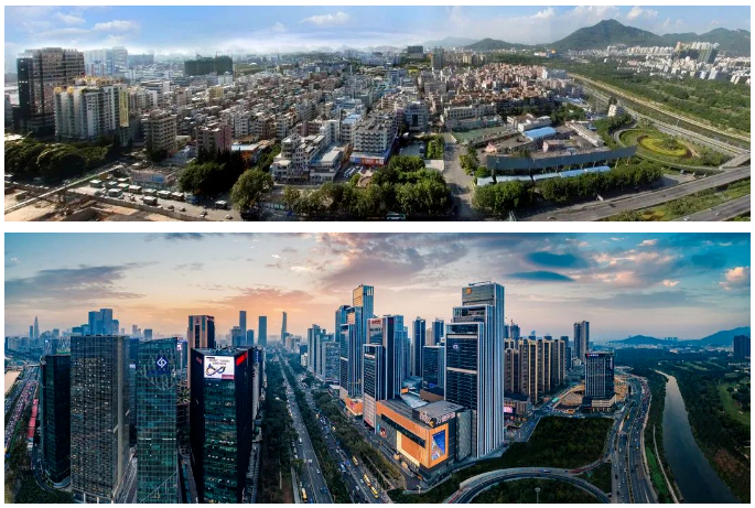 深圳市大冲村改造前后对比图。《深圳市南山区大冲村改造专项规划》经深圳市城市规划委员会建筑与环境艺术委员会2011年第7次会议审议并原则通过。