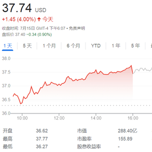 推特周五股价收涨4%收报37.74美元,盘后震荡下行,年初至今推特股价累计跌幅11.53%。