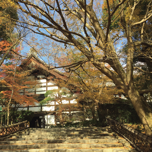 龙安寺参道得走上一段路,两边遍植从春到秋由碧转朱的红叶植物。