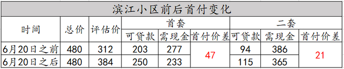 按照现在的银行评估价变化,我算了一下一套总价480万房子的首付变化。