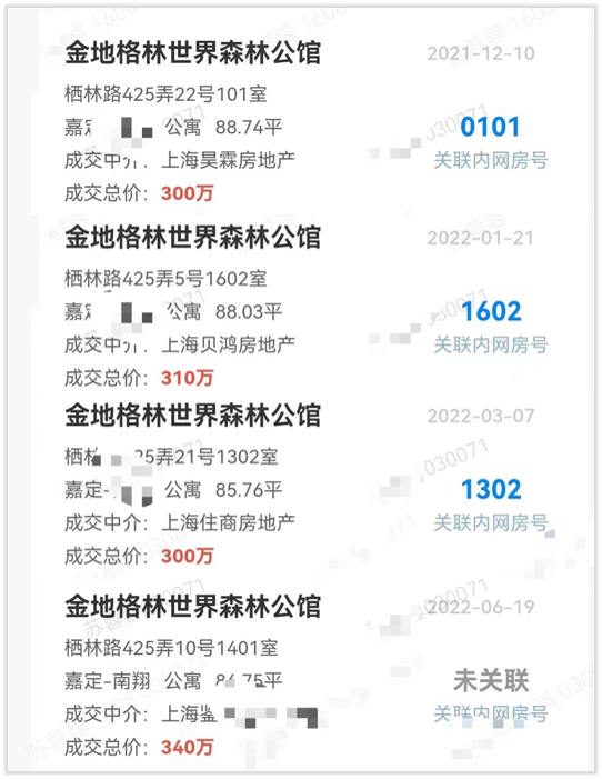 小区叫金地格林世界森林公馆,房龄比较新,是2010年建成的,位于南翔板块。6月19日成交的那一套房源挂牌总价为543万,88平方米的小户型。